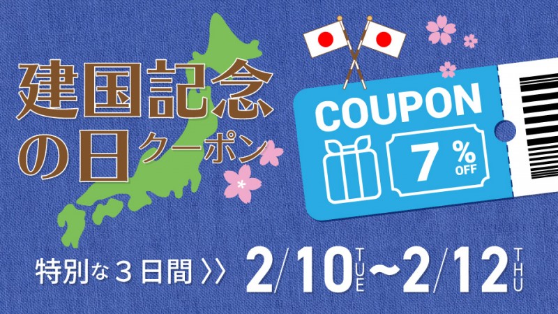 建国記念の日にちなんで【特別企画】☆7%OFFクーポン進呈中!_2/10~12限定