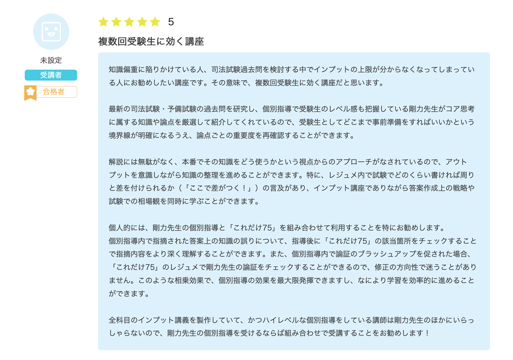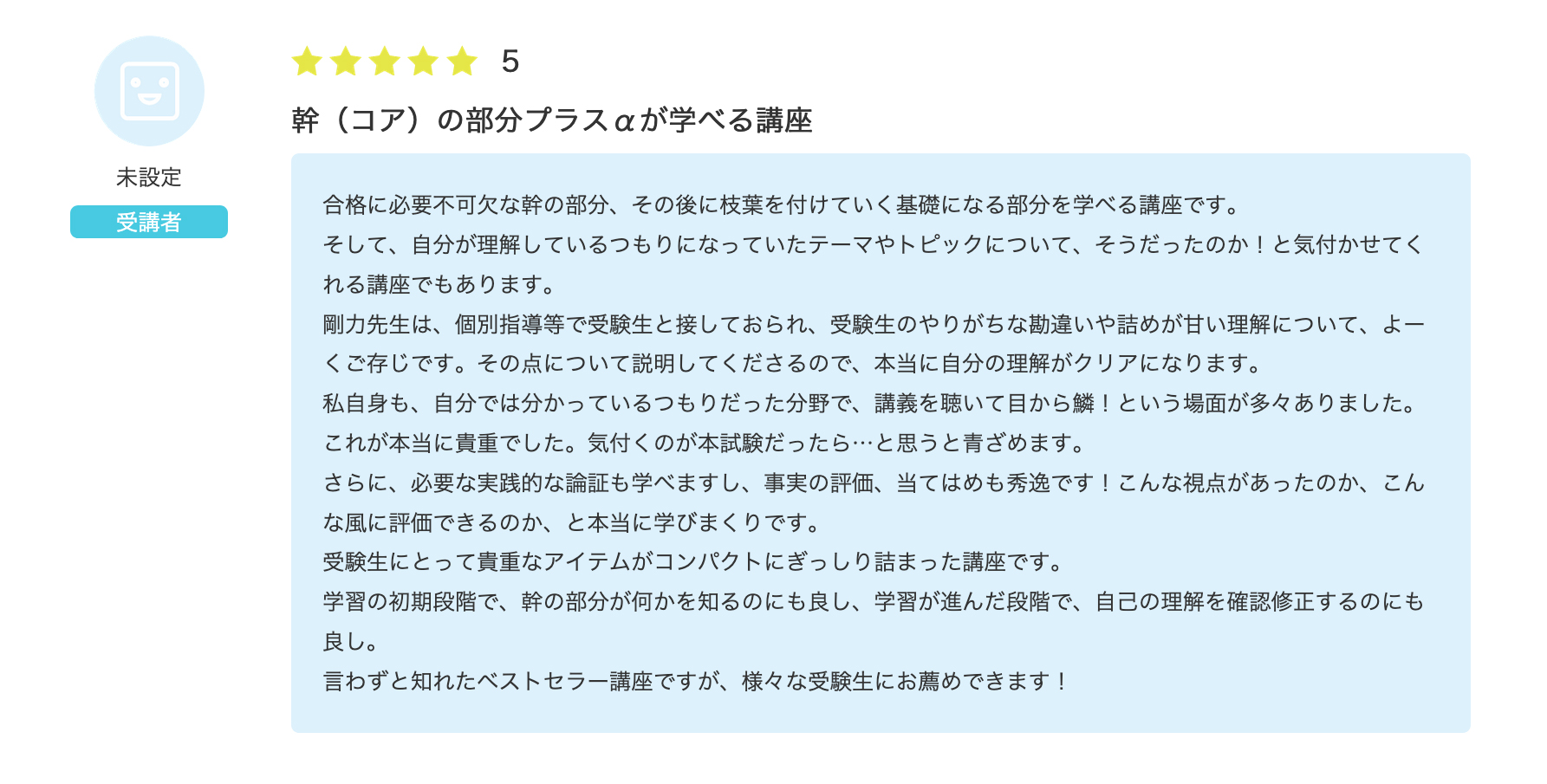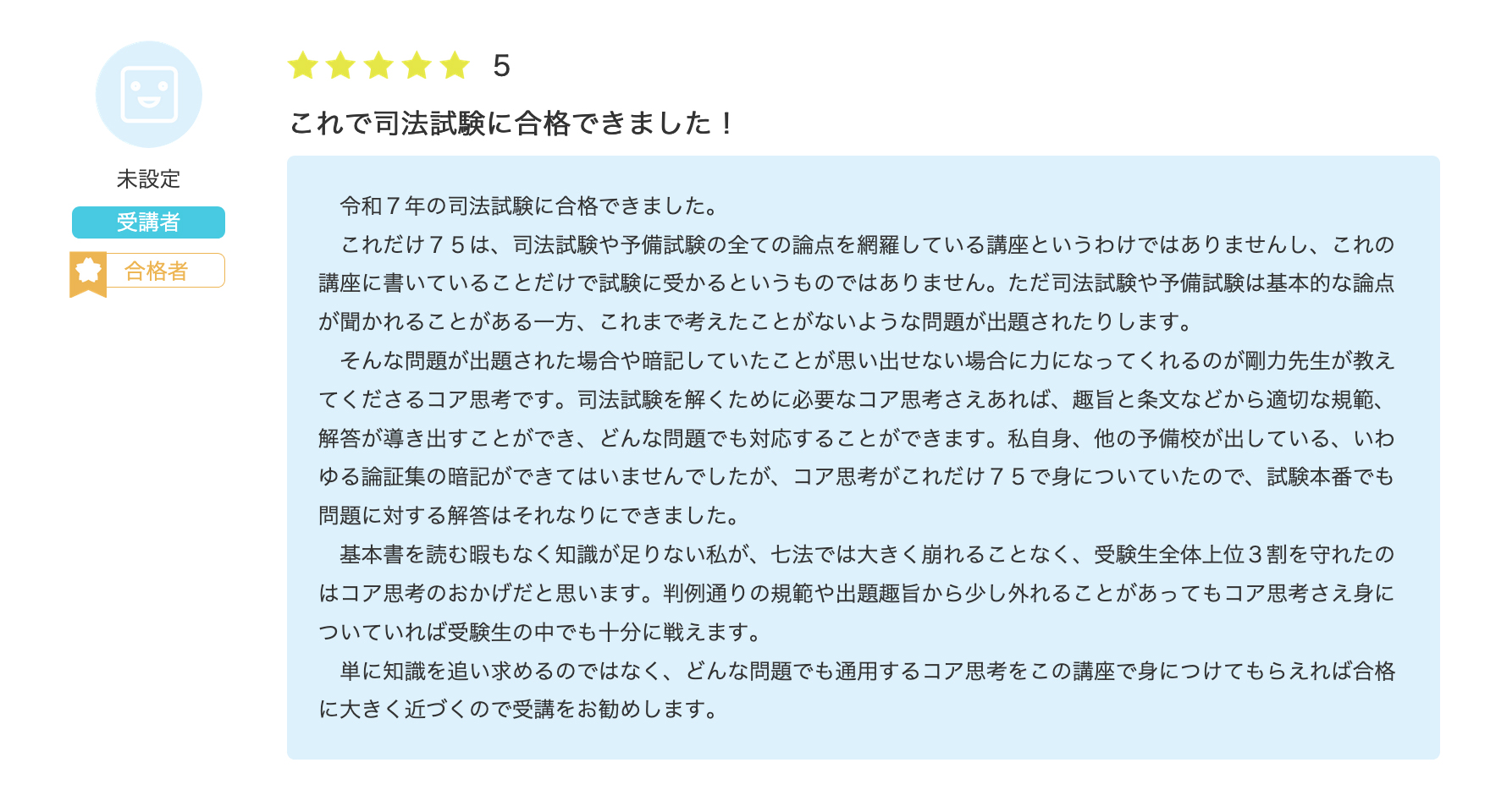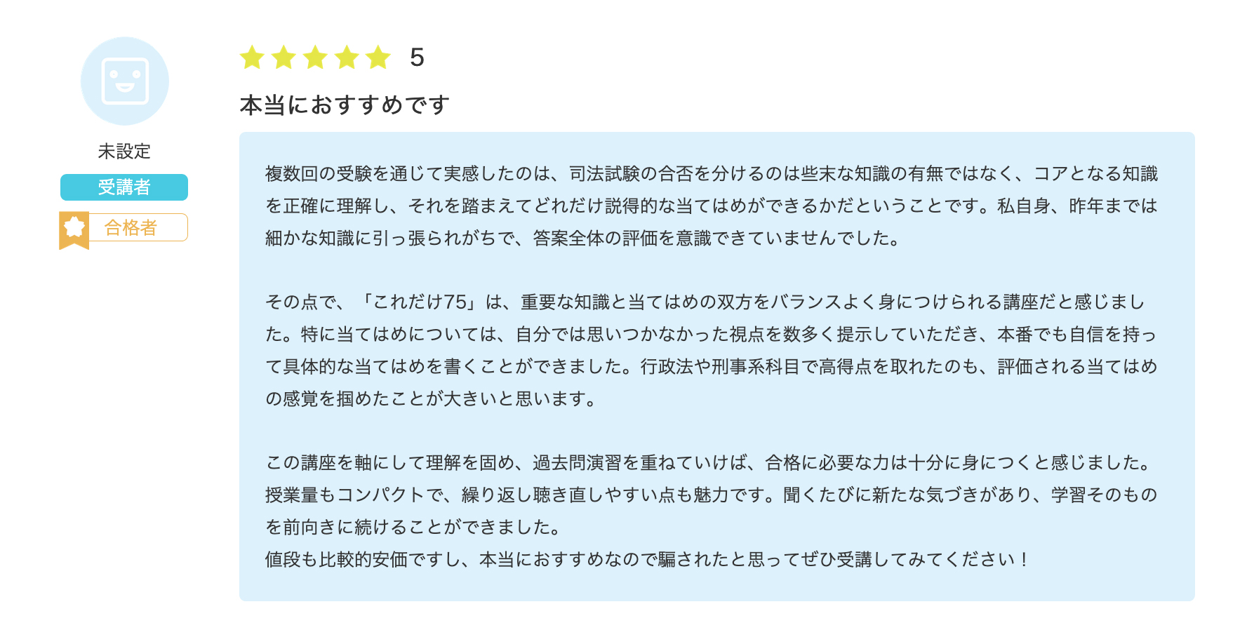 受講者は、この講座を通じて「迷いが消えた」「書けるようになった」「事実の評価(あてはめ)に必要な視点が分かった」などその効果を語ってくれました。今回は、受講生のリアルな口コミをもとに「これだけ!75」が選ばれている理由をご紹介します!