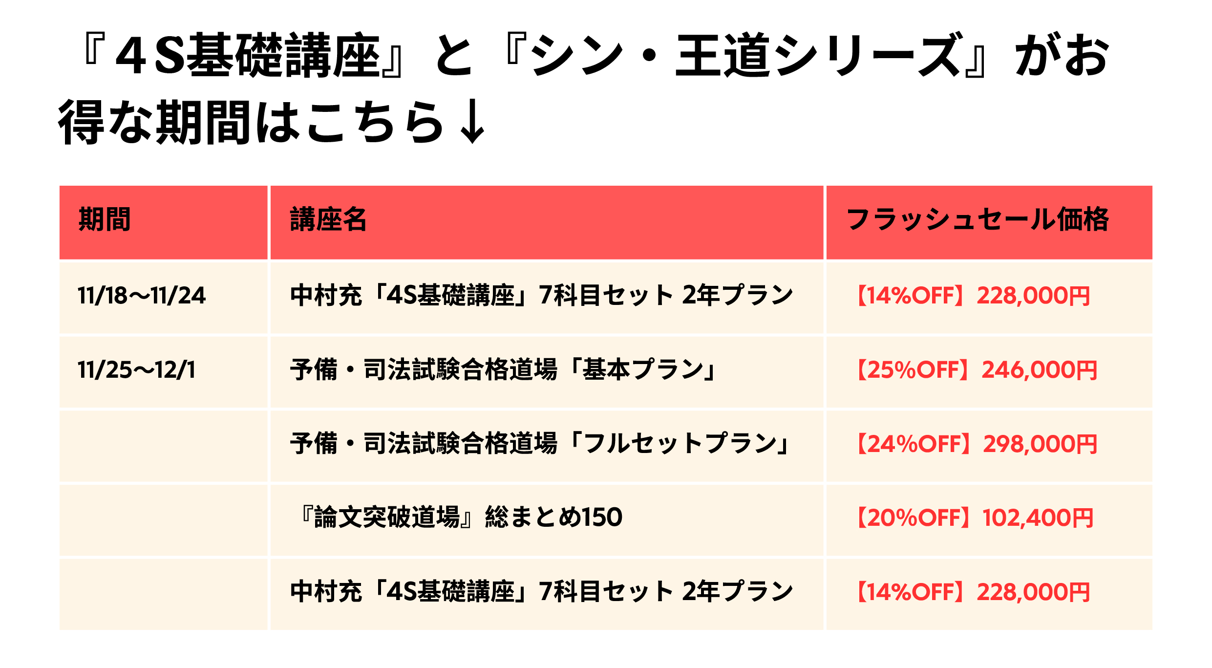 『シン・王道シリーズ』と『4S基礎講座』がお得な期間はこちら⬇︎