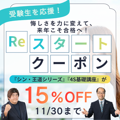 『シン・王道シリーズ』/『4S基礎講座』で使える【15%OFFクーポン】はこちら↓