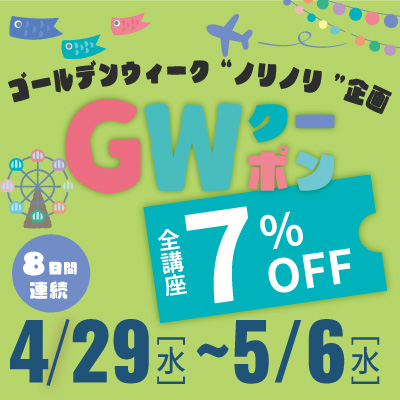 全講座及びセール価格からもさらに使える7%OFFクーポンです!