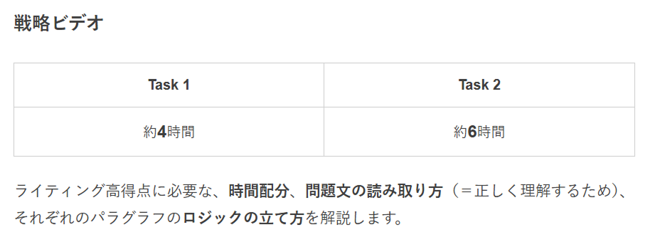 Task 2では、主な5パターンの例題と、9つの高得点テンプレートで、論理的な文章の展開を理解し、読み手にわかりやすく伝えるための表現方法と構成を習得します。
