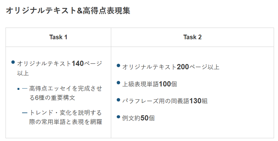 講義資料と別に提供する高得点英語表現集を暗記し、使いこなせるようにすることで十分IELTSライティングに対応できます。