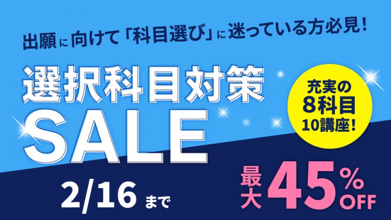 どうしても後回しになりがちな選択科目。予備試験・願書出願前の講座選びに役立つ選択科目対策SALE実施中!