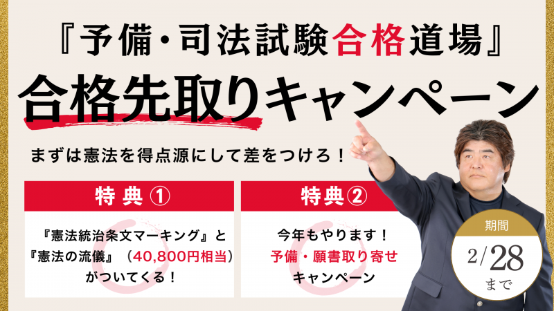 『予備・司法試験合格道場』まずは憲法を得点源にして差をつけろ!合格先取りキャンペーン