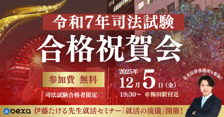 令和7年司法試験「合格祝賀会&就活の流儀」開催が決定!合格者の方はどなたでも無料で参加いただけます。