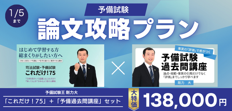 予備試験論文攻略プラン(「これだけ!75」+「予備過去問講座」セット)通常価格198,000円⇨特別価格138,000円(税込)