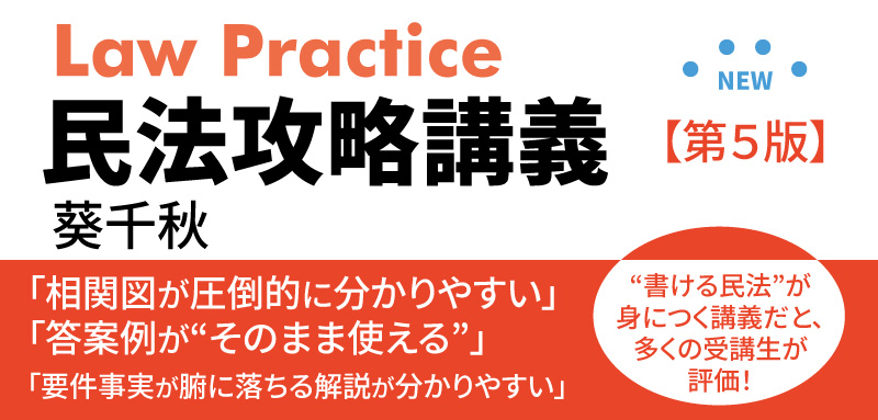 BEXAの人気講座が、第4版→「第5版」へアップデート!受講者の多くが「民法の答案の書き方がわかるようになった」と評価!特に、条文引用を重視したあてはめや「要件事実+条文」で構成された試験で使える答案例が参考になったという声が多数!12月下旬より、待望の「第5版」として新講座が販売開始予定!?
