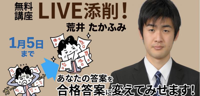 【無料講座】LIVE添削!あなたの答案を合格答案に変えてみせます