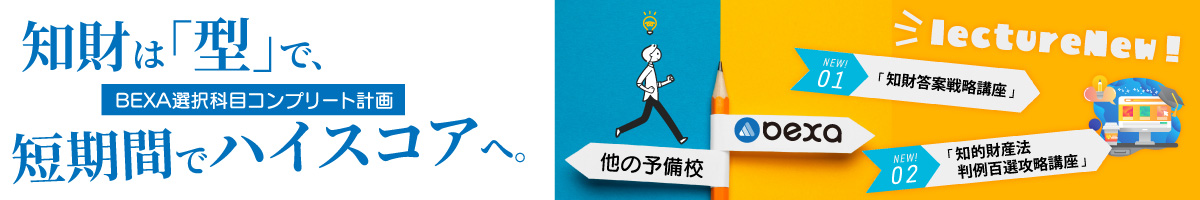 予備校の都合で選ぶのは、もう終わり。全8科目から「自分の一本」を選べるBEXAに、最強の知財2講座がデビュー!