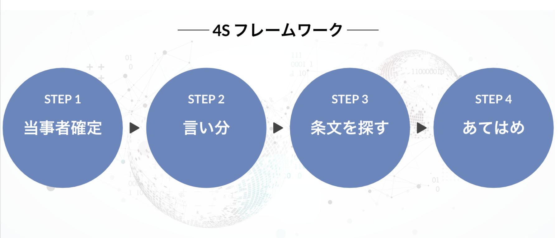 予備試験・司法試験に出題される問題は科目を問わず、法的な争訟の場面を題材にしており、必ず当事者とその言い分が設問に含まれています。4Sフレームワークでは、法律知識からでなく、このように設問に含まれた当事者と言い分を思考の起点にすることで誰でも事前知識なしで過去問を解くことができます。