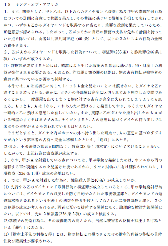 さらに、答案例がないため④あてはめのポイントにも重点は置かれていません。予備試験論文刑法では、法解釈以上にあてはめが重要視されるため、あてはめの相場観や考え方を重点的に学べないことは非常に痛いです。