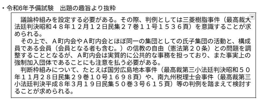 本試験・予備試験にかかわらず、憲法論文では重要な判例の理論を意識した検討が求められます。